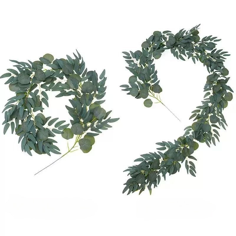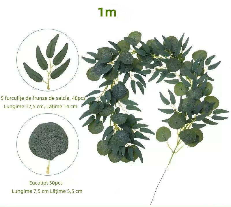 Adaugă o notă naturală și rafinată decorului tău cu această ghirlandă artificială de 1 metru, decorată cu frunze de salcie și eucalipt. Cu un aspect dens și realist, este ideală pentru a transforma orice spațiu într-un colț verde și armonios – fără grija întreținerii plantelor naturale.
