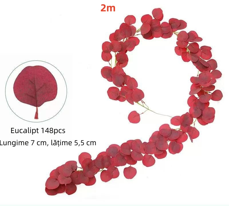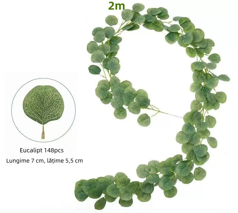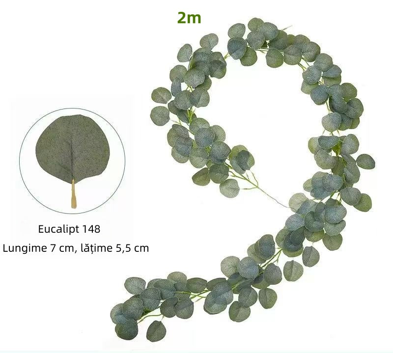Adaugă un accent natural și modern în casa ta cu această ghirlandă decorativă artificială din eucalipt, disponibilă în 4 nuanțe elegante. Fiecare ghirlandă are o lungime de 2 metri și este compusă din 148 de frunze realiste, cu detalii bine conturate și textură mată sau pufoasă, în funcție de model.
