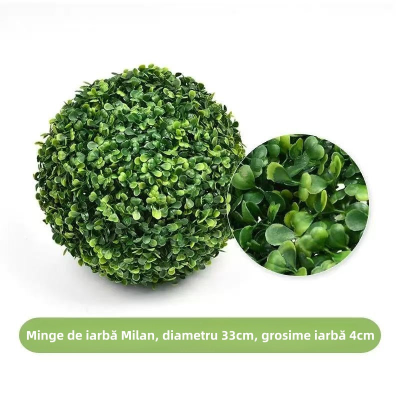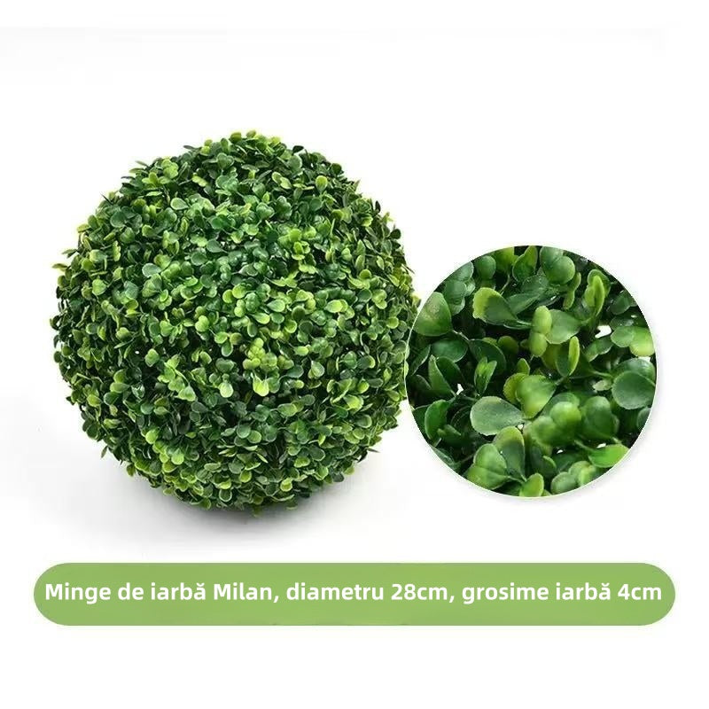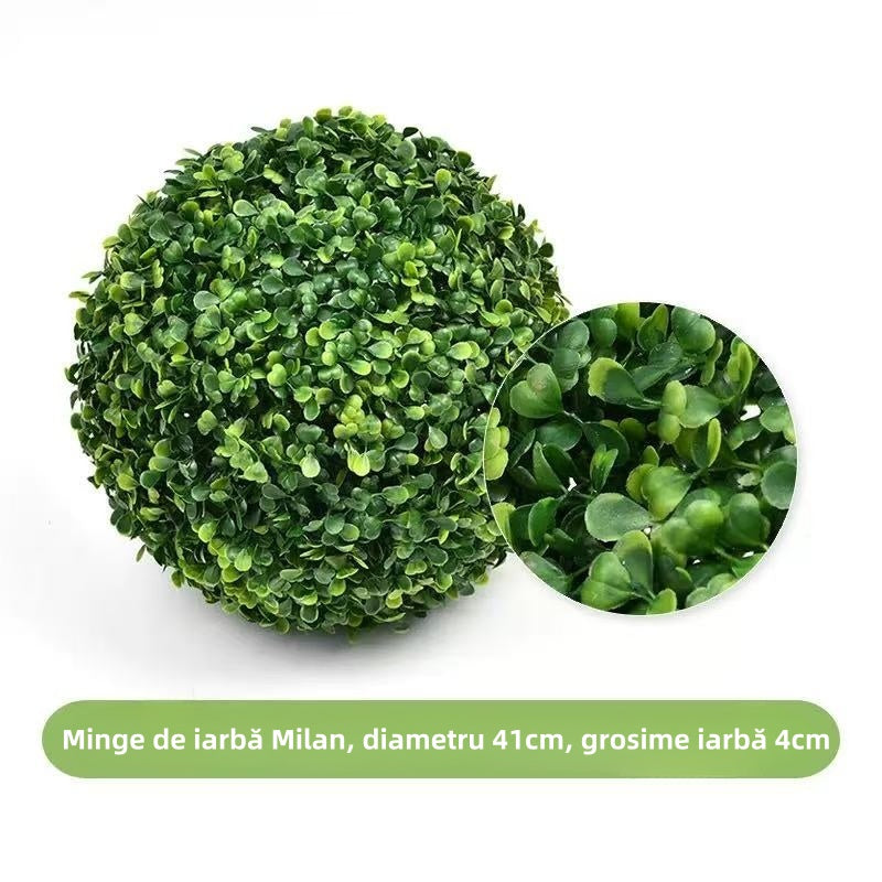Disponibilă în 3 dimensiuni (28 cm, 33 cm, 41 cm), cu o grosime a frunzei de 4 cm, mingea Milan oferă un aspect luxuriant, fără efort de întreținere. Este rezistentă la razele UV și la intemperii, astfel încât își păstrează prospețimea indiferent de sezon.