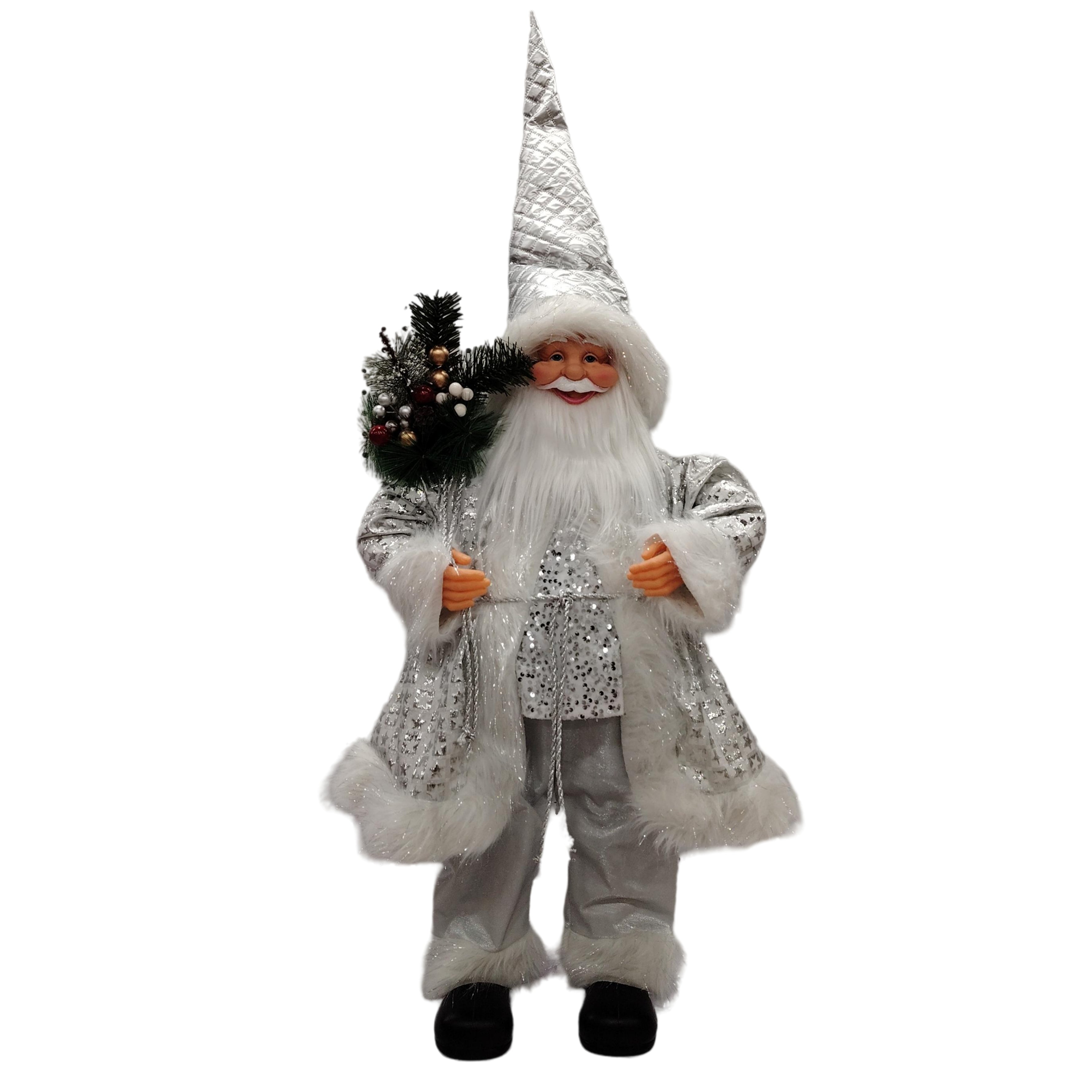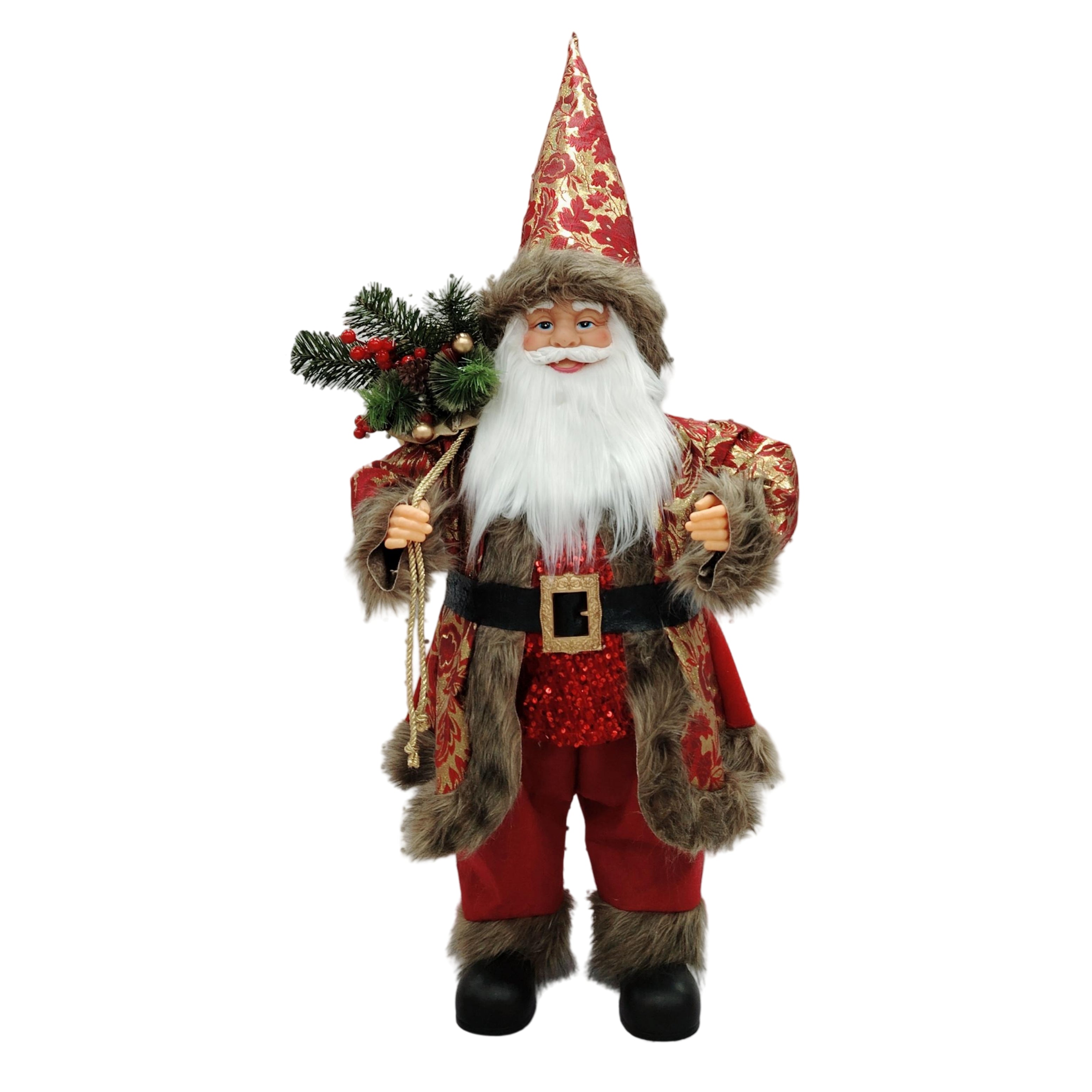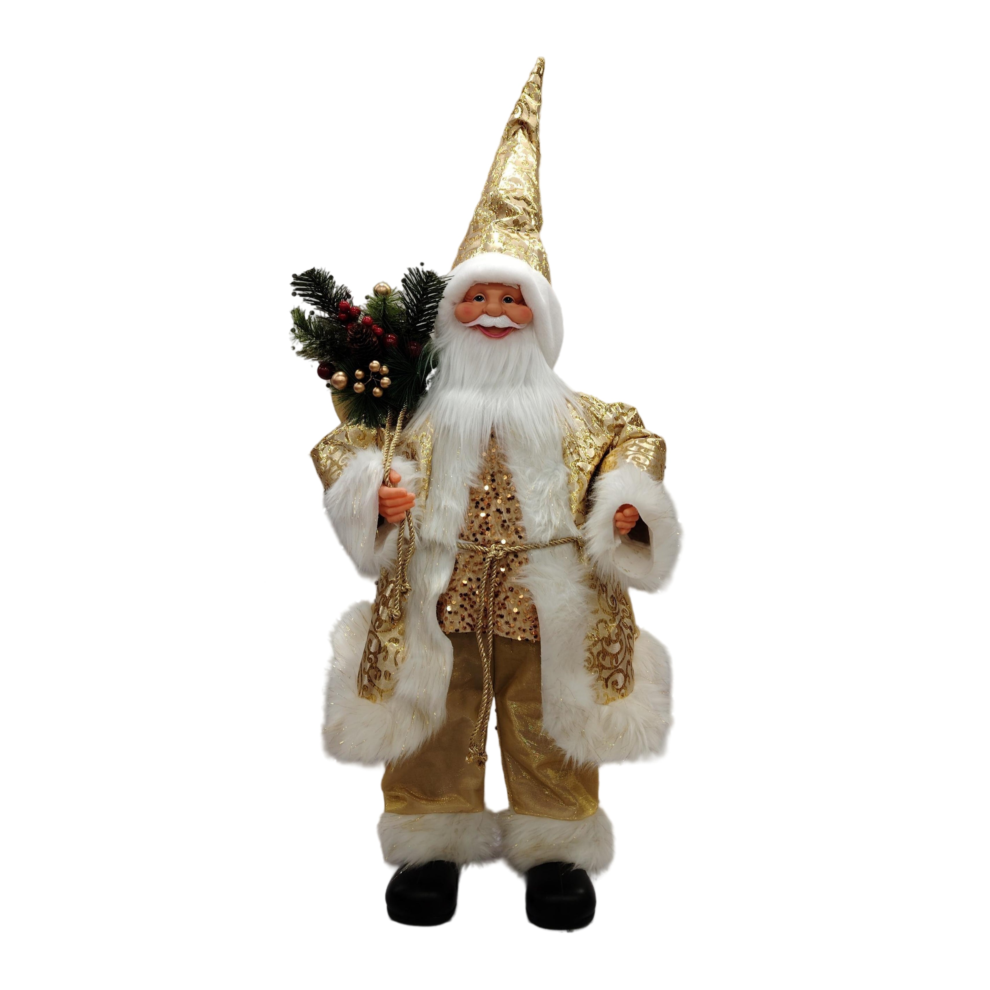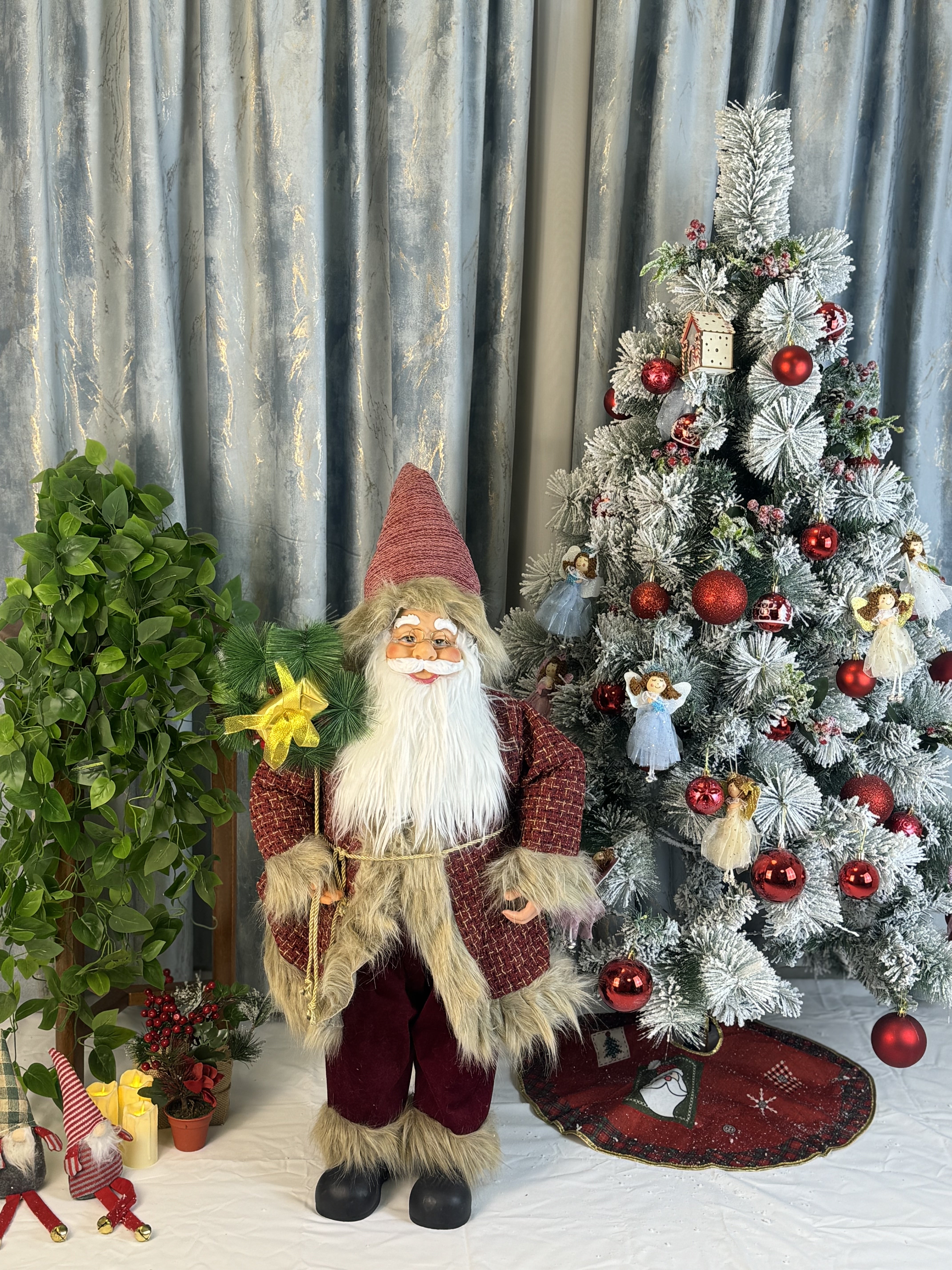 Creează un decor spectaculos de sărbători cu acest Moș Crăciun decorativ înalt de 100 cm, ideal pentru case, magazine, showroom-uri sau evenimente tematice. Figurina este disponibilă în mai multe variante de culoare – auriu, roșu, alb, argintiu sau combinații elegante, toate împodobite cu blăniță albă, broderii fine și accesorii festive.