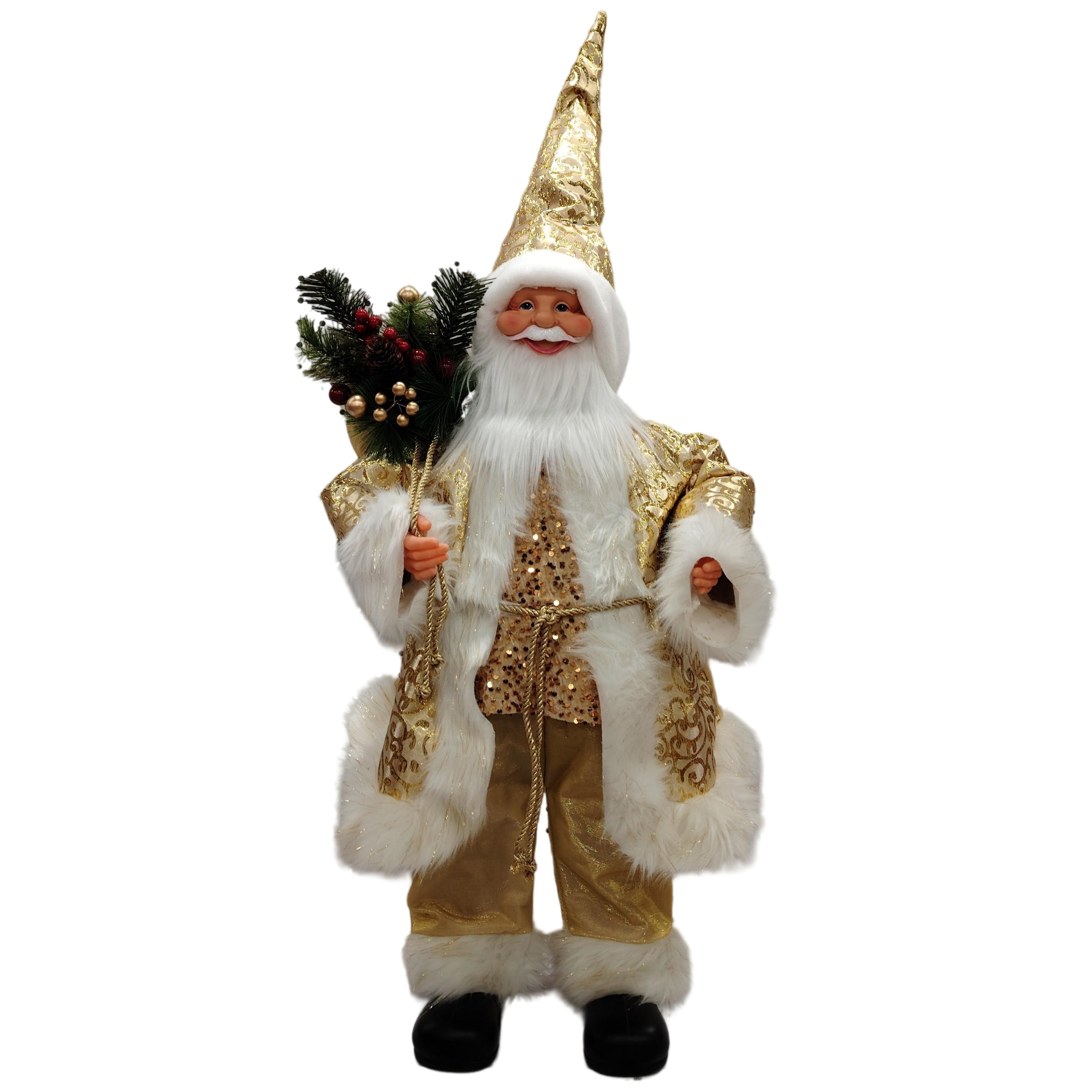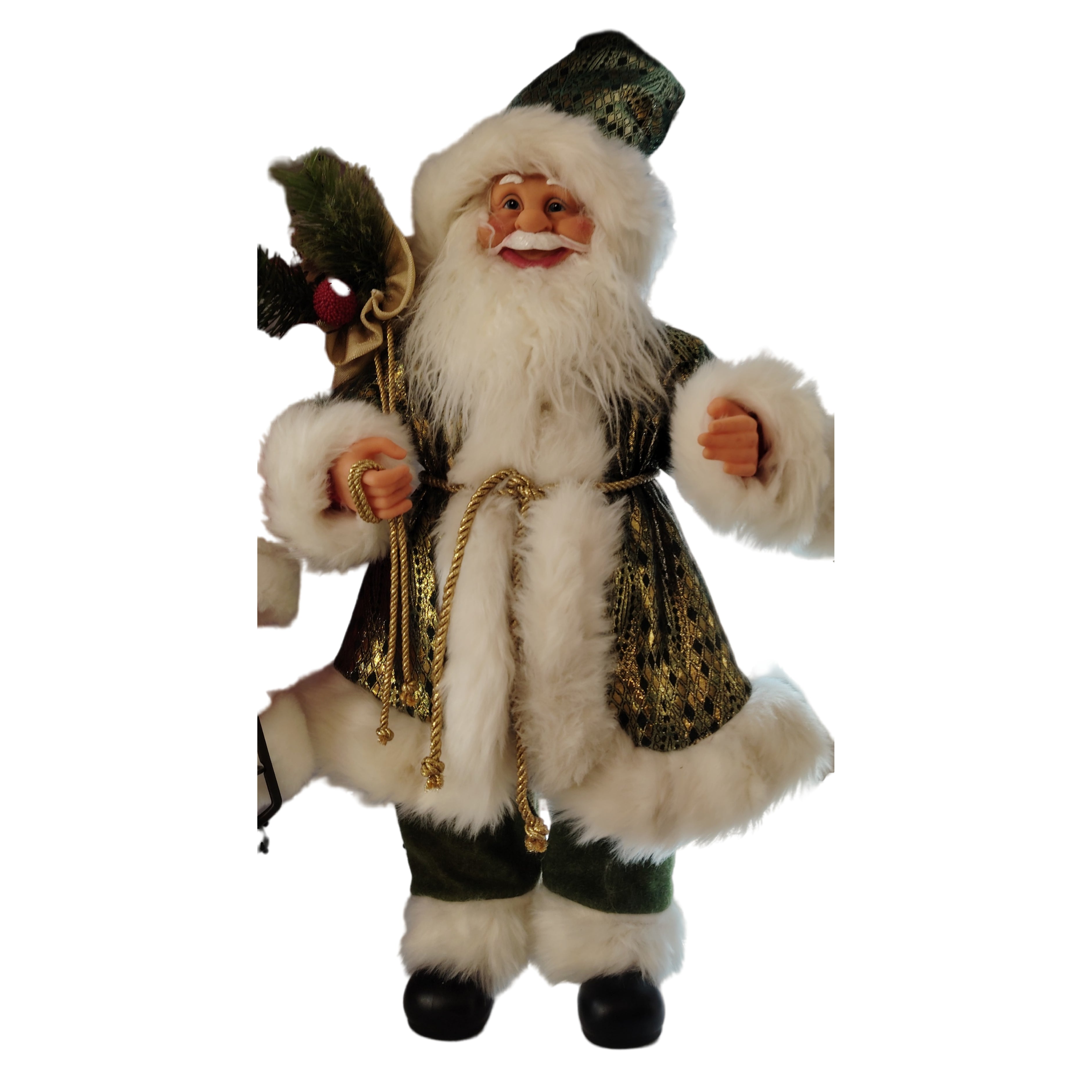 Adaugă farmecul sărbătorilor în casa ta cu acest Moș Crăciun decorativ, ideal pentru decorul de iarnă. Realizat din materiale textile de calitate, figurina este atent finisată: barbă albă bogată, haină elegantă (în diverse culori: argintiu, roșu, auriu, alb), cizme pufoase și accesorii festive precum brăduț, sac de cadouri sau crenguțe naturale.