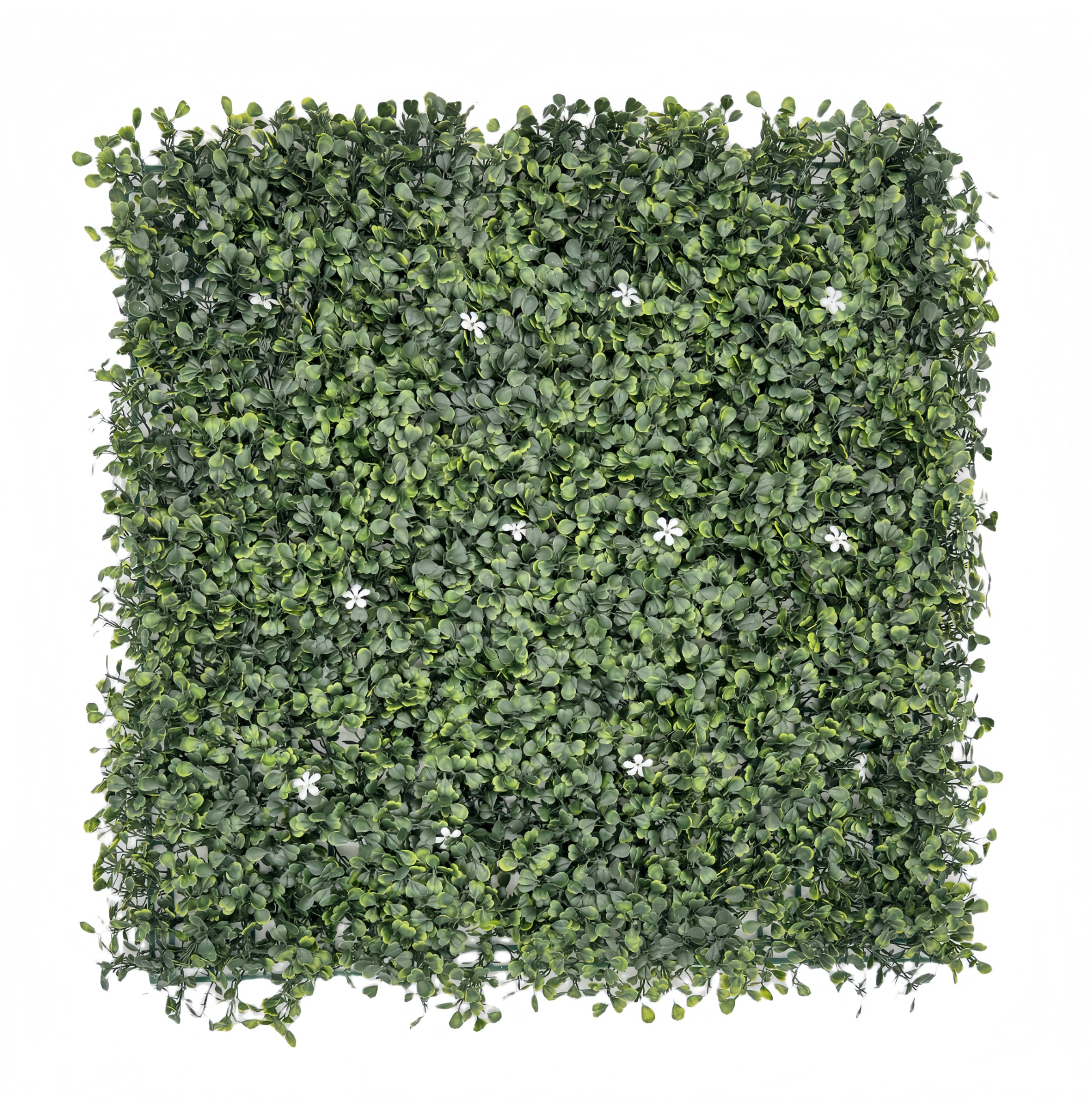 Un panou verde din plante artificiale, având dimensiunile de 50cm x 50cm, este o suprafață decorativă ce imită aspectul unui perete sau panou acoperit de plante verzi, dar este realizat din materiale artificiale. Acest panou poate fi alcătuit dintr-o varietate de plante și frunze artificiale, care sunt aranjate pentru a crea un aspect natural și plăcut. Este ideal pentru a adăuga un strop de verdeață și prospețime în interiorul sau exteriorul locuinței sau al spațiilor comerciale, fără necesitatea întreținerii unui perete viu. Panoul verde din plante artificiale poate fi montat pe pereți sau garduri, oferind un aspect decorativ atrăgător și fiind ușor de curățat și întreținut.