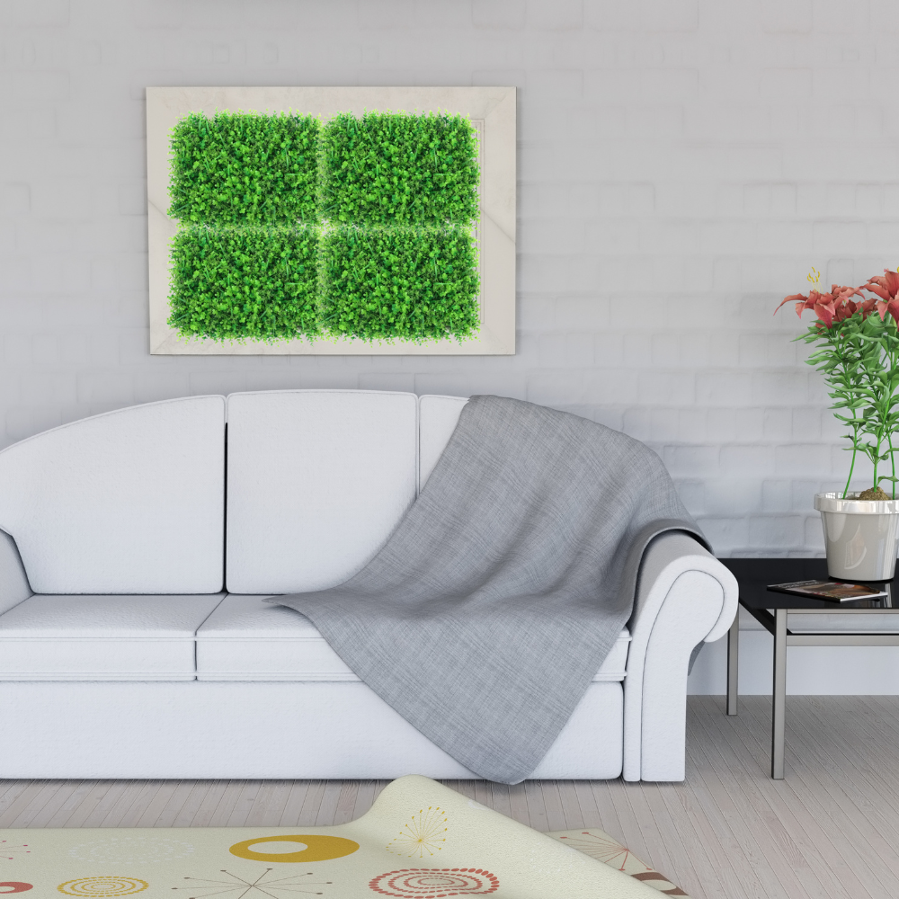 4. Personalizare flexibilă: Peretele decorativ cu plante artificiale vă oferă libertatea de a crea un design unic și personalizat. Alegeți plantele preferate și experimentați cu diferite aranjamente pentru a obține aspectul dorit. Vă puteți adapta peretele pentru a se potrivi perfect cu stilul și gusturile dvs.