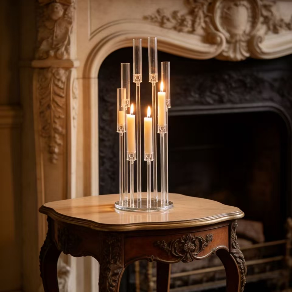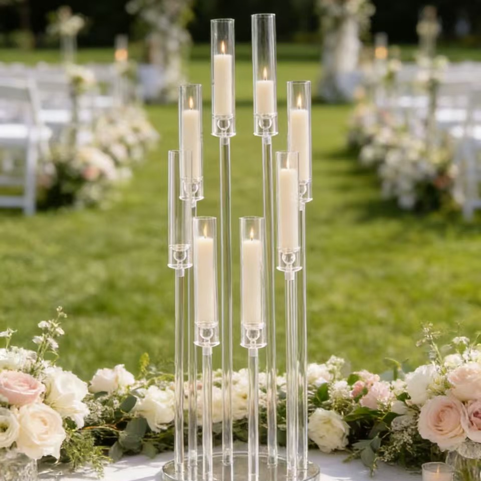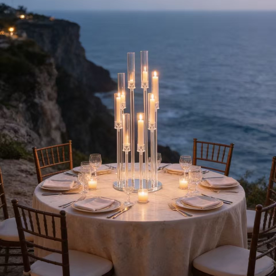Datorită designului transparent, suportul se integrează ușor în decoruri romantice, clasice sau moderne, punând în valoare lumânările și aranjamentele din jur fără să încarce vizual spațiul. Este o alegere potrivită pentru nunți, botezuri, aniversări și alte evenimente speciale unde fiecare detaliu contează.