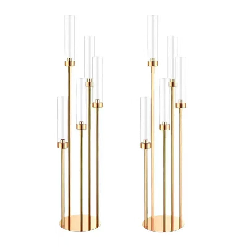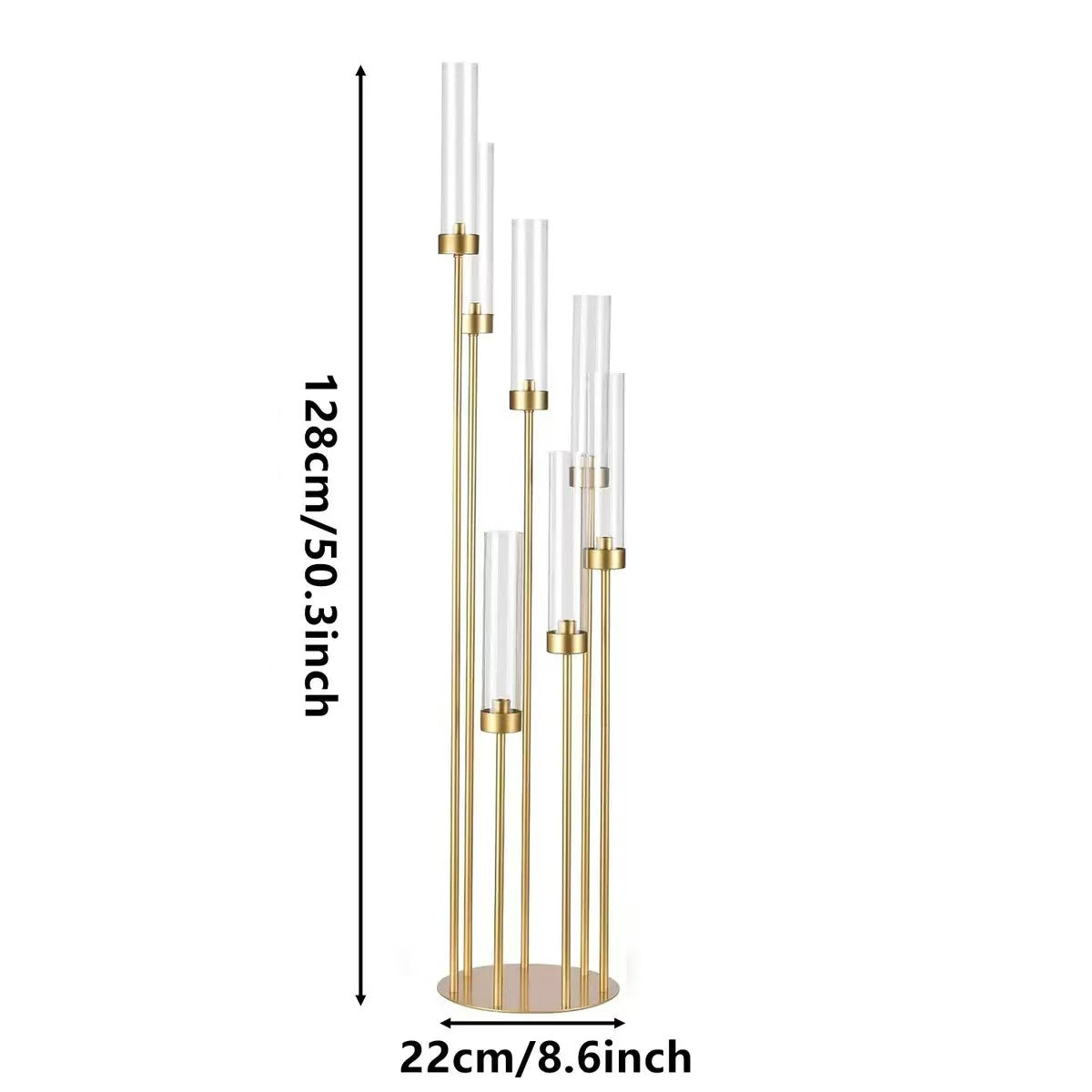Suport pentru Lumânări, Decor Auriu cu Tuburi Cilindrice din Sticlă, 128 cm Înălțime Max